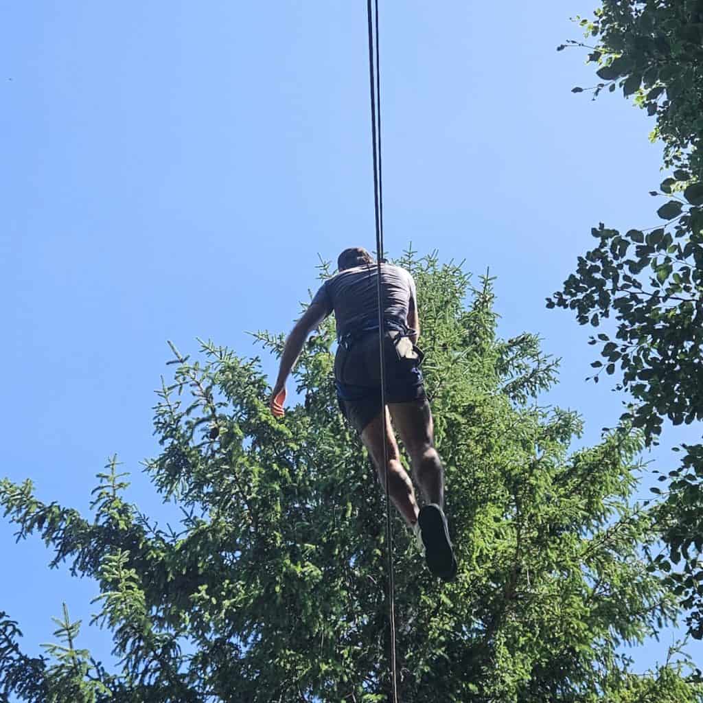 Pour garantir votre sécurité, vous êtes équipé d’un baudrier relié à une ligne de vie continue : aucun détachement possible, pour une progression fluide et sans risque.